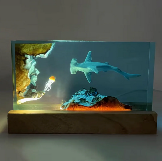 Hammer Head Shark and Jellyfish Resin Lamp